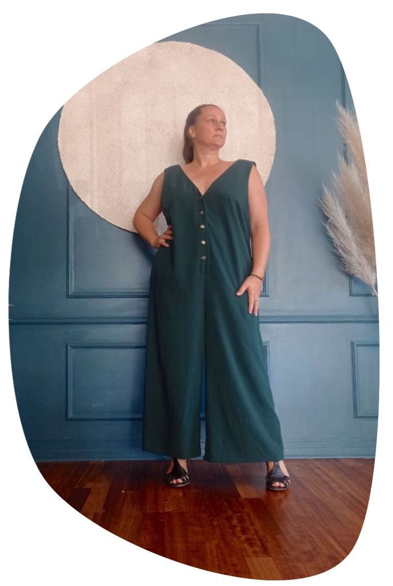 Niveau style et confort, j'étais là ou j'avais envie d'être. On m'a plusieurs fois suggéré de marquer un peu plus la taille, je vais y réfléchir pour les prochains portés. En tout cas je la reporterai c'est sûr, en hiver aussi avec un body noir à manches longues ou une veste de tailleur. Ce n'est pas ma seule combi verte, mais je crois que je n'aurai jamais assez de combi verte !